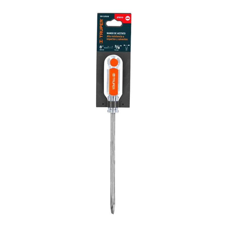 Desarmador plano 3/8" x 8" mango de acetato, Truper