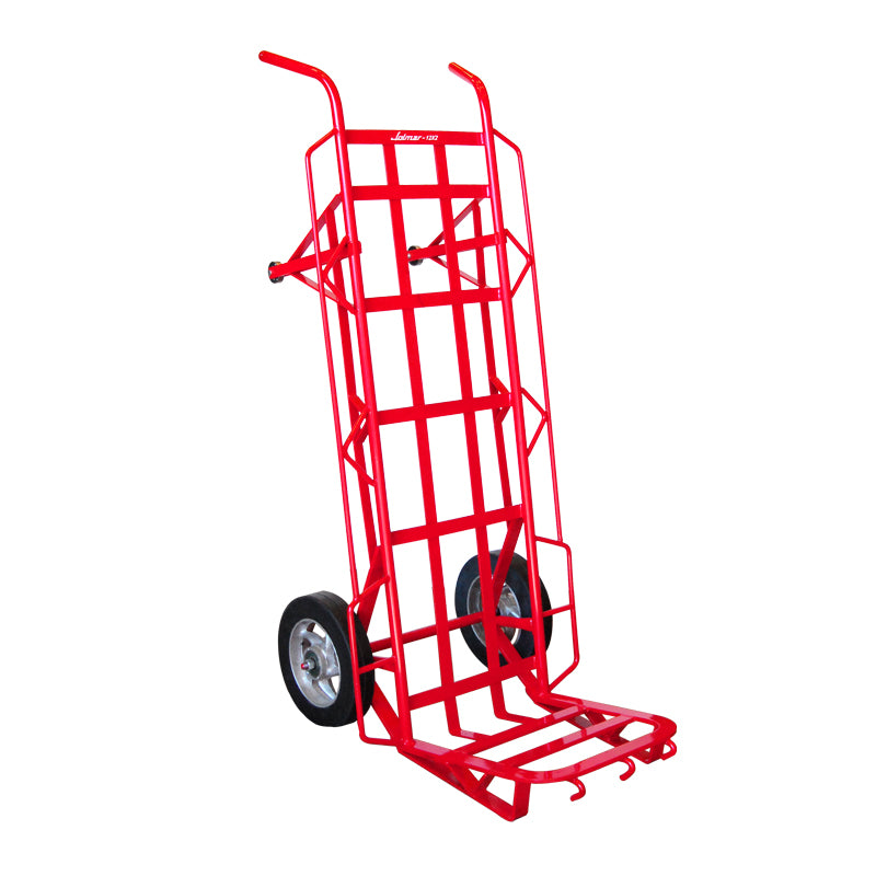 Herramienta de carga de gran utilidad que aligerará el peso y facilitará el transporte de materiales de grandes proporciones. Artículo móvil en forma de “L”, con dos ruedas sobre una base y cuernos en la parte superior del mismo para maniobrarlo. Cuenta con una base tipo repisa para colocar objetos con el fin de trasladarlos fácilmente.