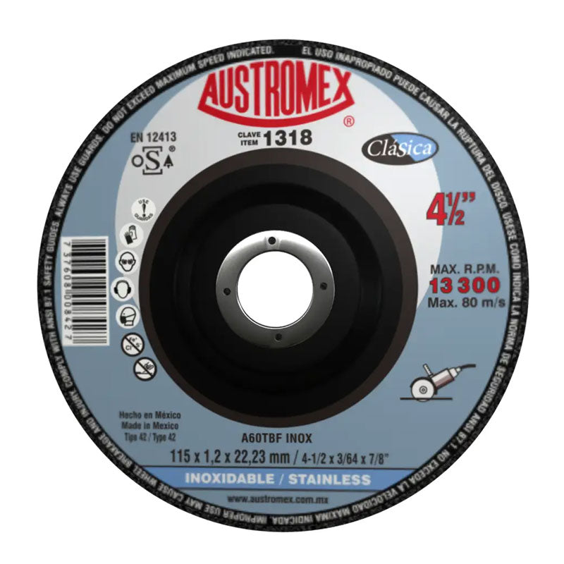 Disco abrasivo para corte de acero inoxidable de 4 1/2" x 3/64" x 7/8", Austromex