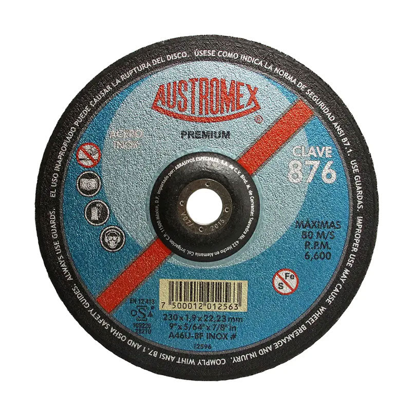 Disco abrasivo para corte de acero inoxidable de 9" x 5/64" x 7/8", Austromex