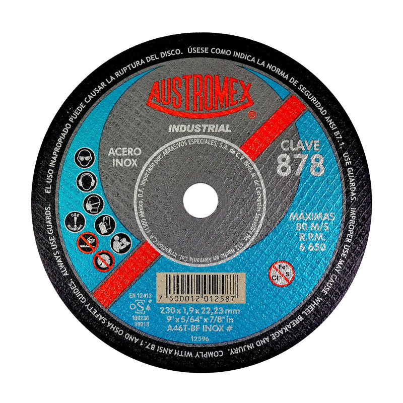 Disco abrasivo para corte de acero inoxidable de 9" x 5/64" x 7/8", Austromex