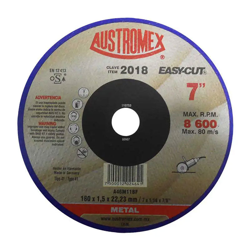 Disco abrasivo para corte de metal de 7" x 1/16" x 7/8", Austromex