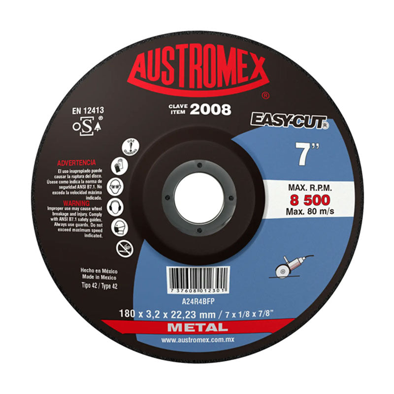 Disco abrasivo para corte de metal de 7" x 1/8" x 7/8", Austromex