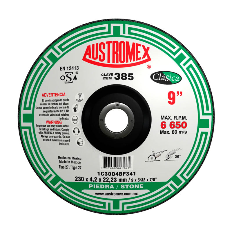 Disco abrasivo para desbaste y corte de piedra de 9" x 5/32" x 7/8", Austromex