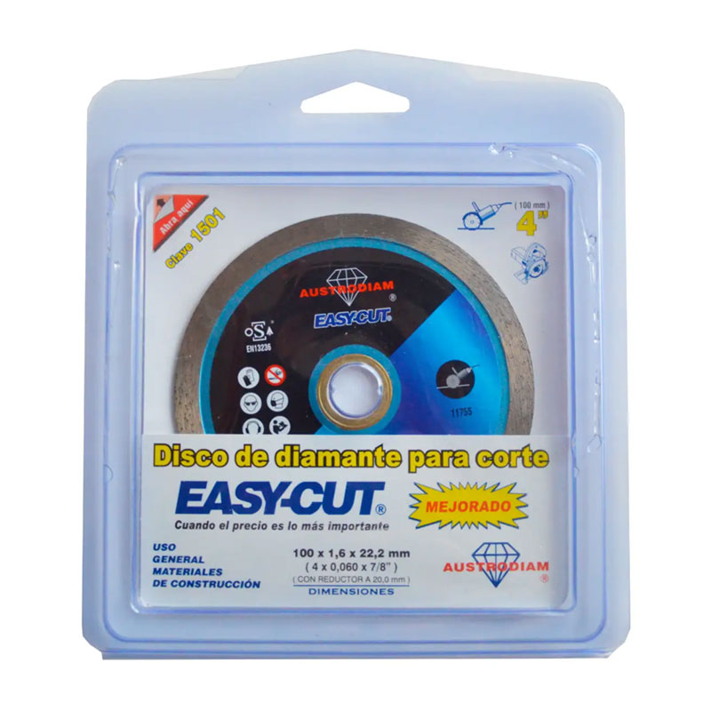 Disco de diamante de 4" x 7/8" para construcción en general, continuo, Austrodiam