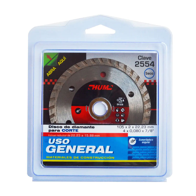 Disco de diamante de 4" x 7/8" para construcción en general, uso continuo, Hum