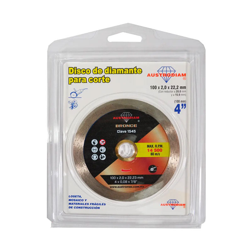 Disco de diamante de 4" x 7/8" para corte de loseta, mosaico, Austrodiam