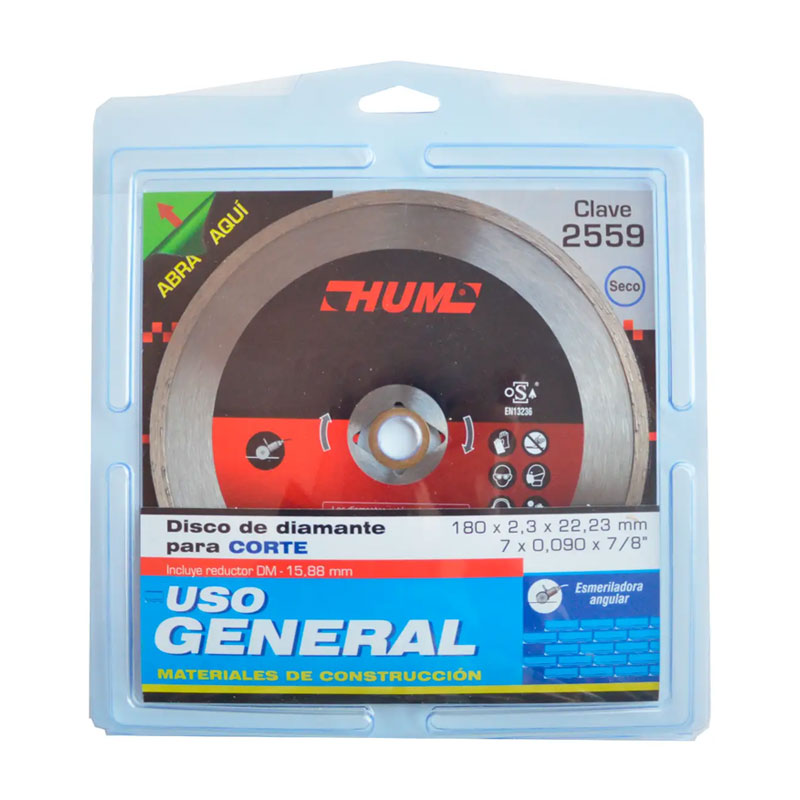 Disco de diamante de 7" x 7/8" para construcción en general, continuo, Hum
