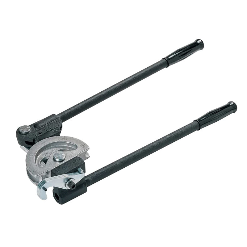 Mangos desplazados con empuñaduras acolchadas para efectuar cómodamente dobladuras de 180°. Un ángulo inicial de 90° y una exclusiva zapata oleo absorbente minimizan el esfuerzo flexor necesario para doblar tubos con exactitud.