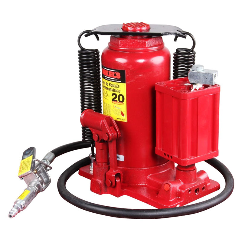 Gato hidroneumático de botella fabricado de acero y base de hierro fundido, ideal para levantar vehículos pesados como camiones, colectivos, rodados agrícolas y de construcción. Funciona en posiciones horizontales, angulares o verticales para aumentar su versatilidad.
