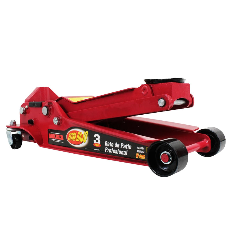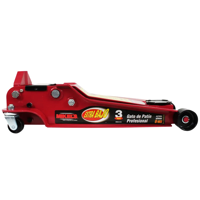 Ideal para vehículos de perfil ultra bajo, cuenta con ruedas giratorias de 360°, válvula de seguridad hidráulica para evitar sobrecargas, palanca de elevación más rápida y bomba dual de doble pistón.