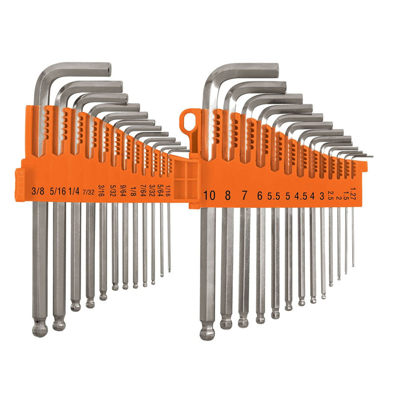 Incluye: 1 Llave estándar de 1/16", 1 Llave estándar de 5/64", 1 Llave estándar de 3/32", 1 Llave estándar de 7/64", 1 Llave estándar de 1/8", 1 Llave estándar de 9/64", 1 Llave estándar de 5/32", 1 Llave estándar de 3/16", 1 Llave estándar de 7/32", 1 Llave estándar de 1/4", 1 Llave estándar de 5/16", 1 Llave estándar de 3/8", 1 Llave milimétrica de 1.27 mm, 1 Llave milimétrica de 1.5 mm, 1 Llave milimétrica de 2 mm, 1 Llave milimétrica de 2.5 mm, 1 Llave milimétrica de 3 mm, 1 Llave milimétrica de 4 mm, 1 Llave milimétrica de 4.5 mm, 1 Llave milimétrica de 5 mm, 1 Llave milimétrica de 5.5 mm, 1 Llave milimétrica de 6 mm, 1 Llave milimétrica de 7 mm, 1 Llave milimétrica de 8 mm, 1 Llave milimétrica de 10 mm.