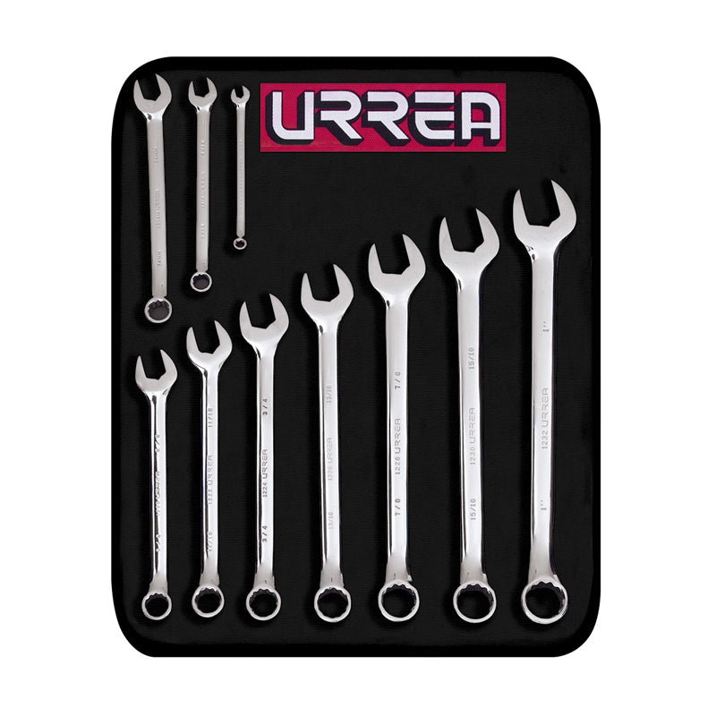 Juego de 10 llaves combinadas pulido espejo 12 puntas, pulgadas, 1200G Urrea