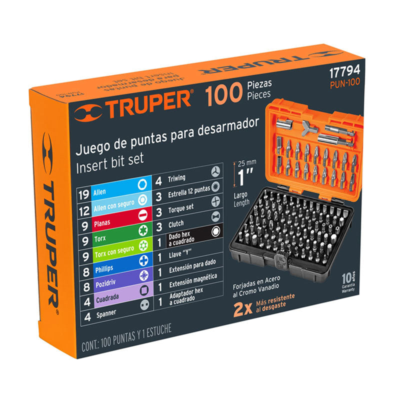 Título:Jgo.100 puntas desarmador 1" pun-100 truper 17794