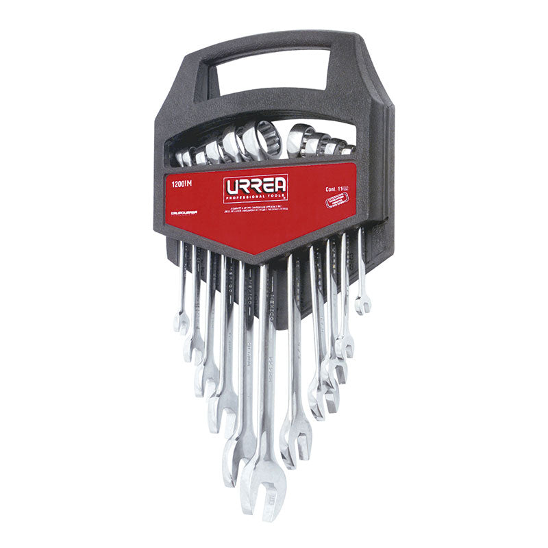 Juego de 11 Llave combinado Métricos con Rack, Urrea
