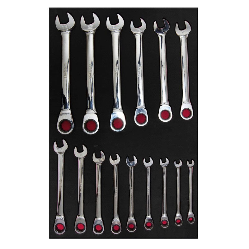Juego de 15 llaves combinadas de matraca métrico, Urrea