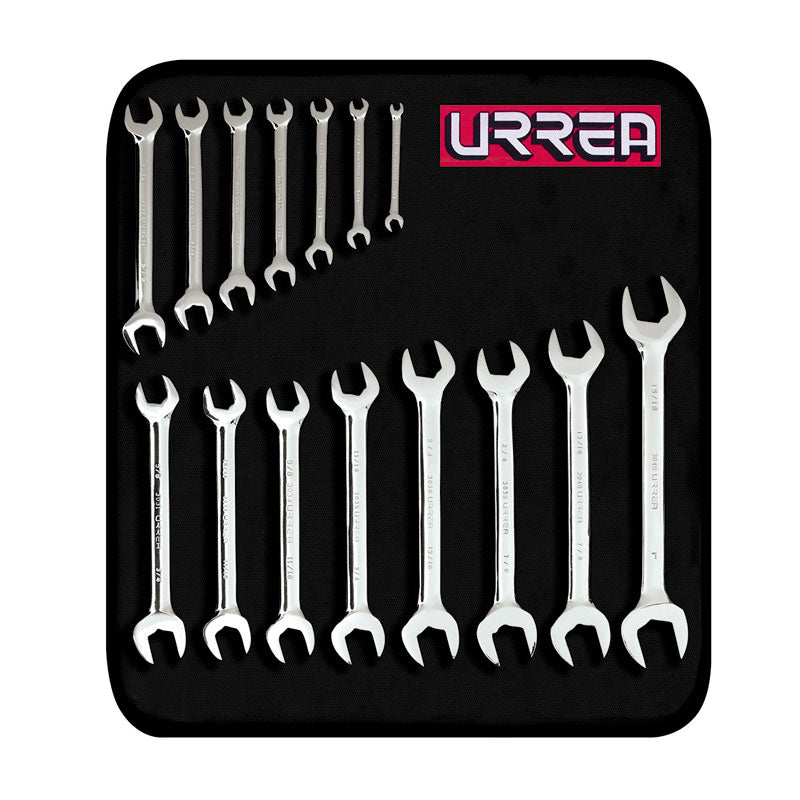 Juego de 15 llaves españolas pulido espejo en pulgadas, Urrea