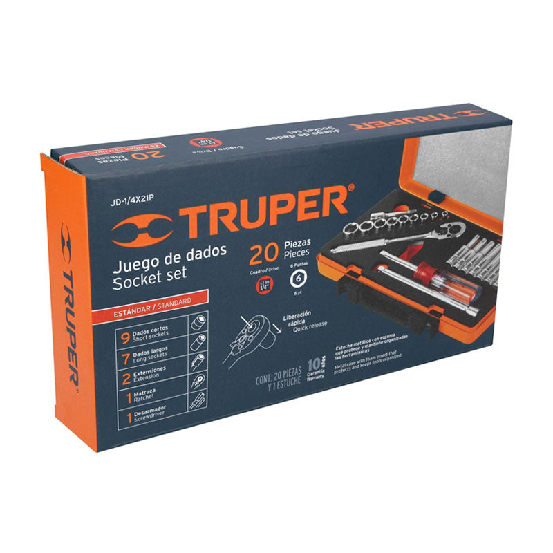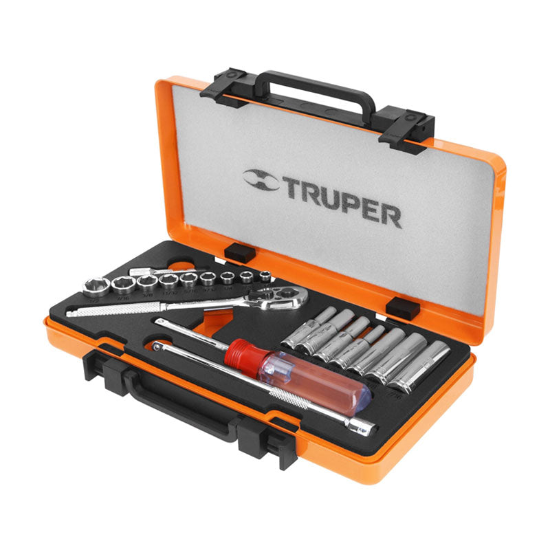 Juego de 20 herramientas cuadro 1/4" std para mecánico, Truper