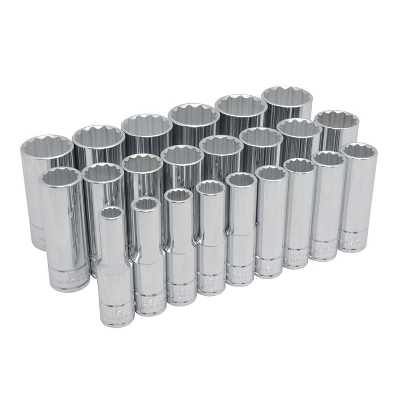 Juego de 23 dados largos métricos con boca de 1/2?, 12 puntas, Urrea