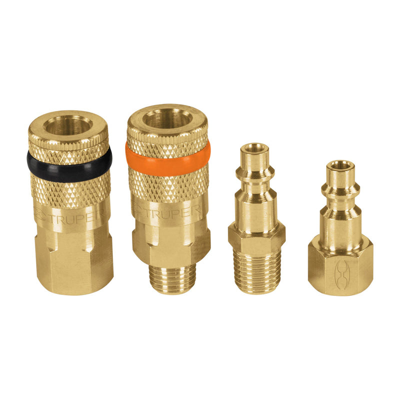 Juego de 4 piezas, coples y conectores rápidos de latón 19080 Truper