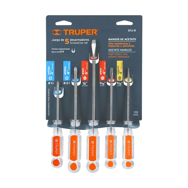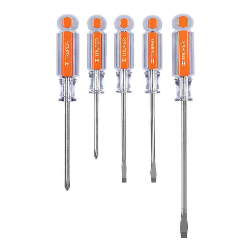 Juego De 5 Desarmadores Mangos De Acetato, Truper