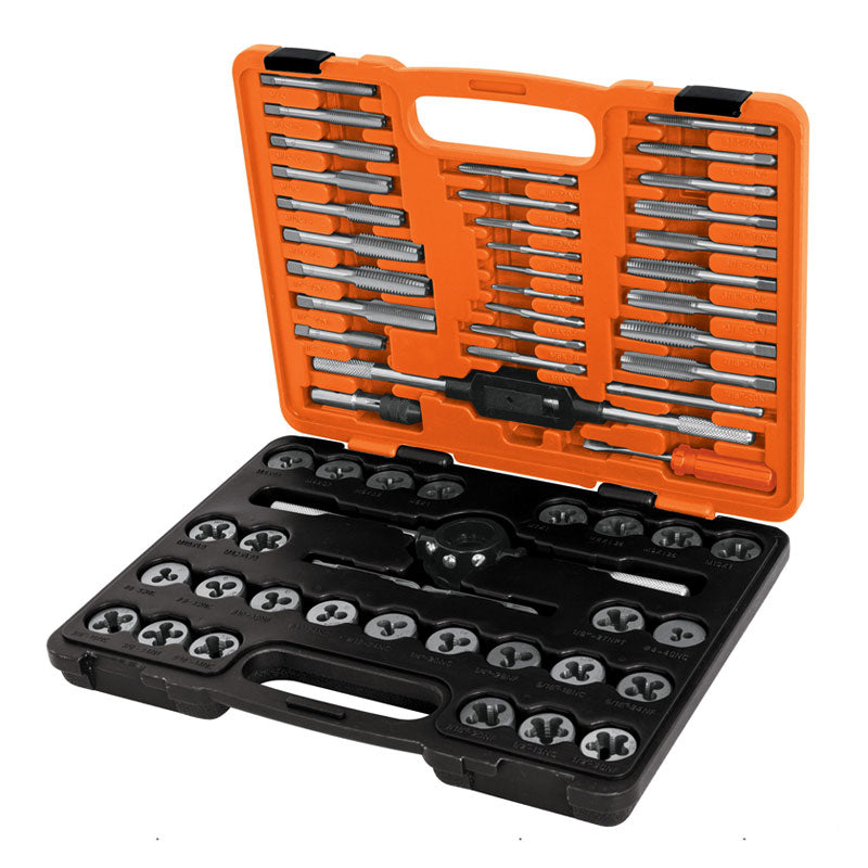 Tarrajas Medidas: M3X0.5, M4X0.7, M5X0.8, M6X1, M7X1, M8X1.25, M9X1.25, M10X1, M10X1.5, M12X1.75, 1/8x27NPT, 1/4x20NC, 1/4x28NF, 5/16X18NC, 5/16X24NF, 3/8X16NC, 3/8X24NF, 7/16X14NC, 7/16X20NF, 1/2X13NC, 1/2X20NF, 4-40NC, 6-32NC, 8-32NC10-24NC, 10-32NF, 12-24NC