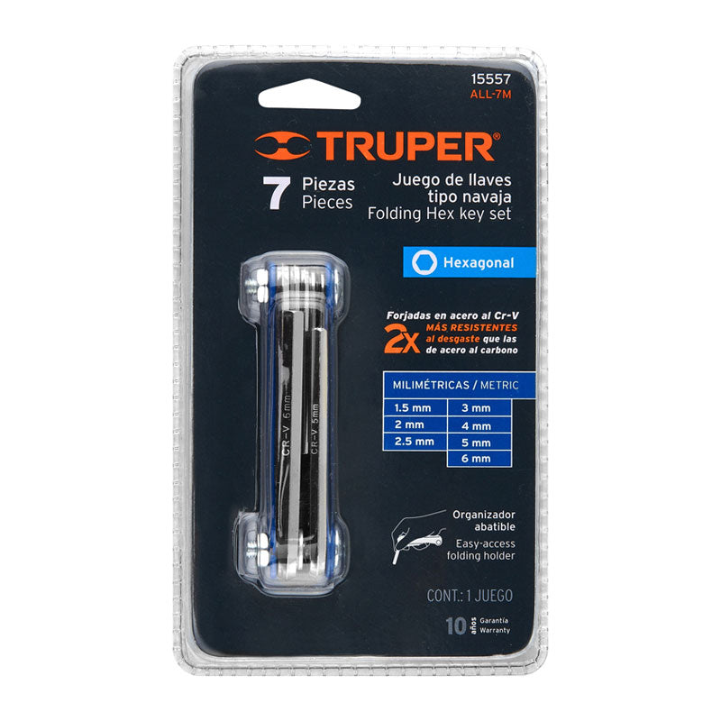 Juego de 7 llaves allen mm tipo navaja, cuerpo de lámina, Truper