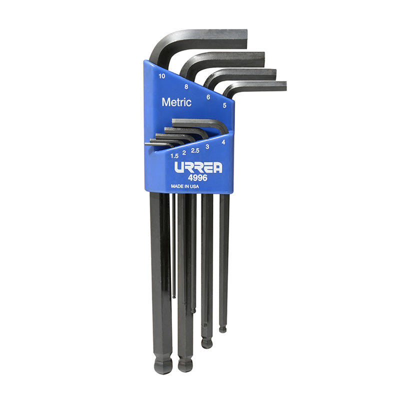 Juego de 9 llaves hexagonales "L" métricos punta bola rack, 4996 Urrea