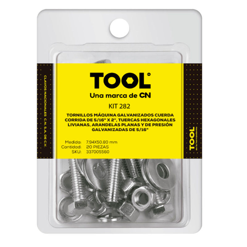 La medida corresponde al tamaño del tornillo que se acopla. Permite sujetar y fijar uniones de elementos desmontables. ? Kit 282 D/Tor.Maq,Tuer.Hex,Aran Plana Presion Galv