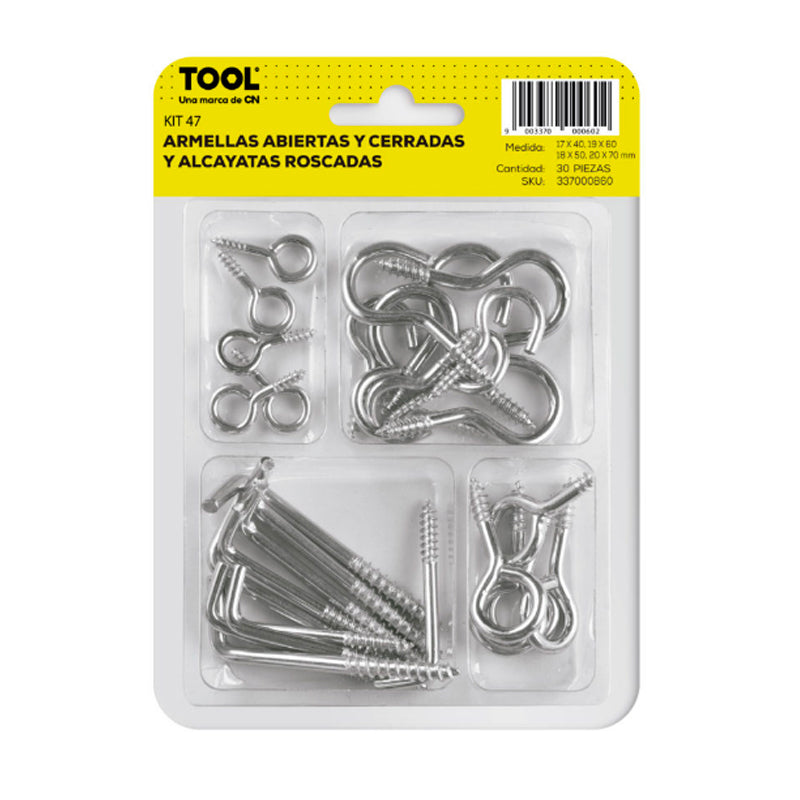 Kit47 Mix De Armellas Y Alcayatas Diferentes Medidas Con 30 Piezas
