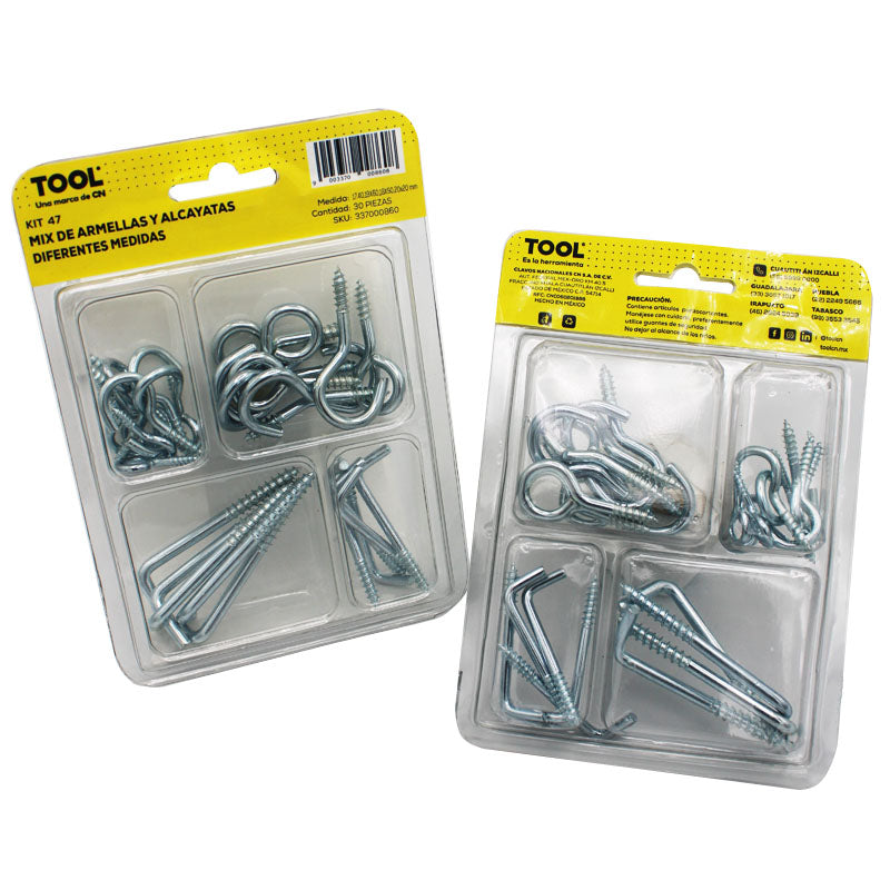 Para trabajos de instalación en madera y aglomerados. ? Kit 47 Mix D/Armellas/Alcayatas Dif.Medidas C/30Pz