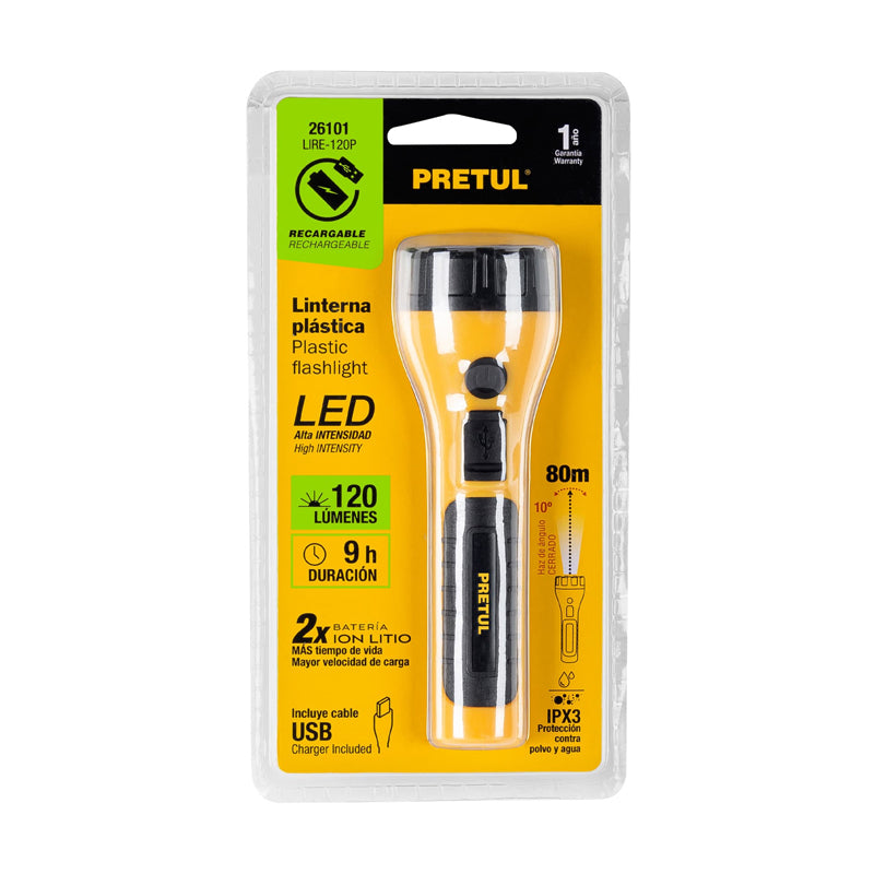 Linterna Plástica Recargable De Led 120 Lúmenes 26101, Pretul