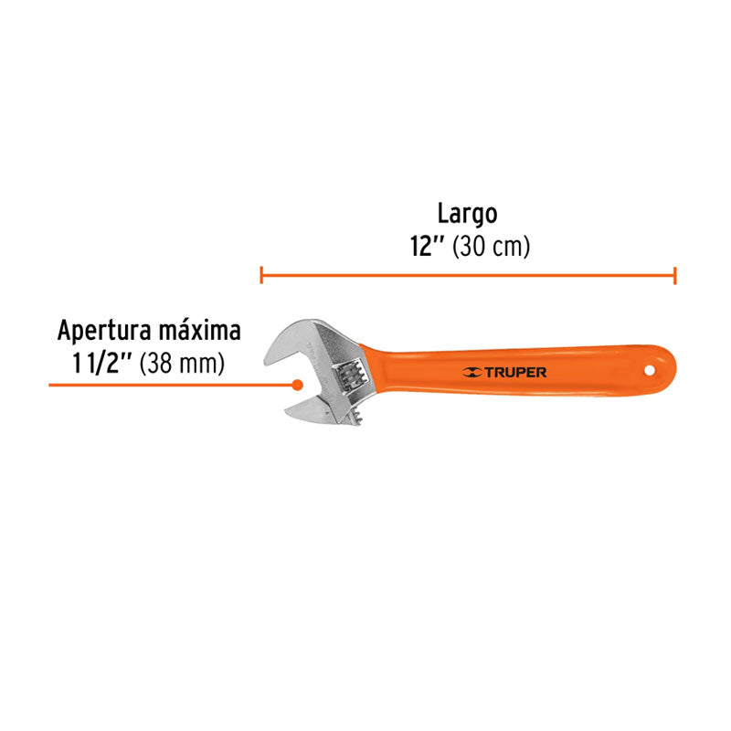 Llave ajustable (perico) 12" cromada mango de pvc, Truper