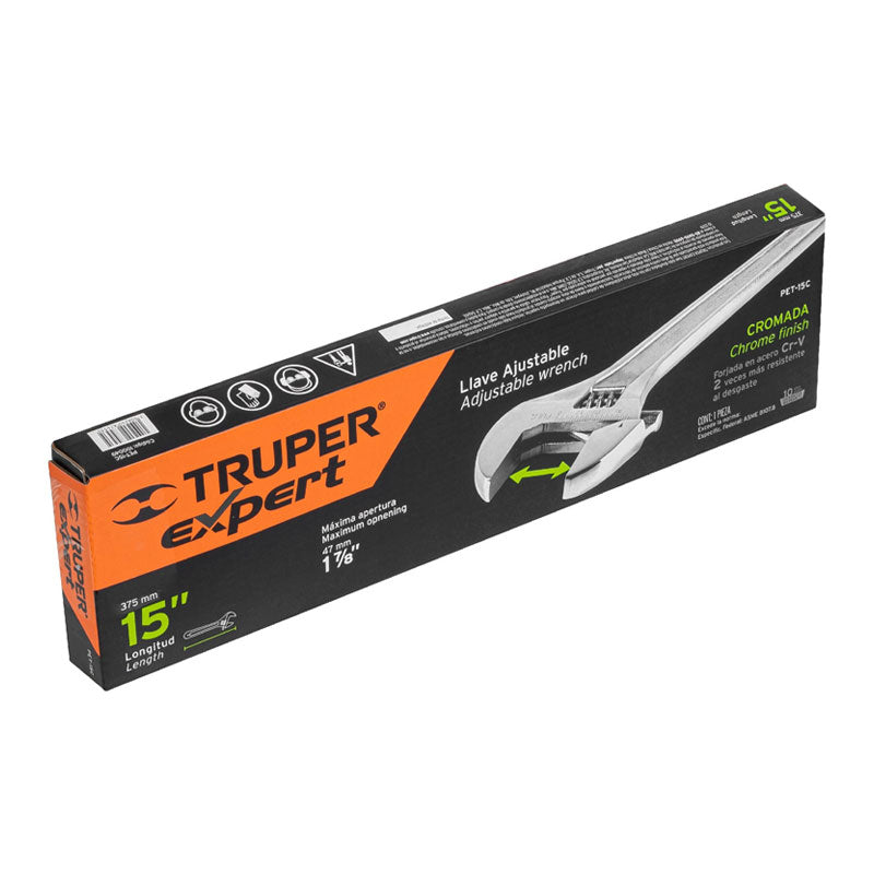 Título:Llave ajustable (perico) 15" profesional cromada, Truper expert