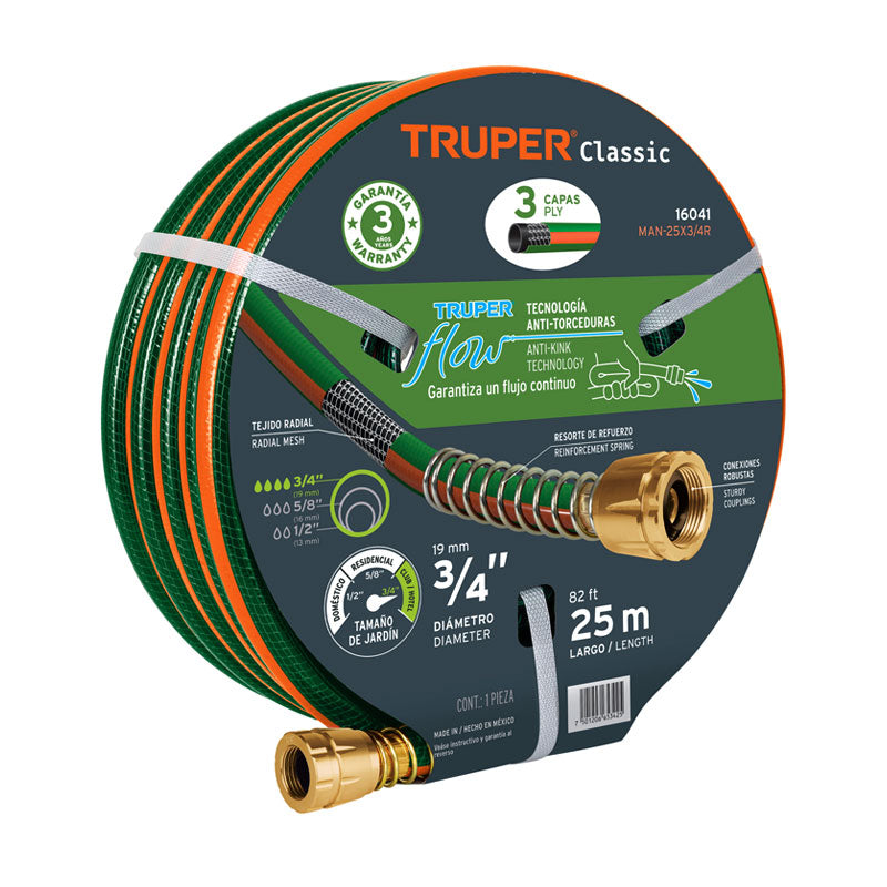Manguera 3/4" reforzada 3 capas conexiones de metal 25 m, Truper
