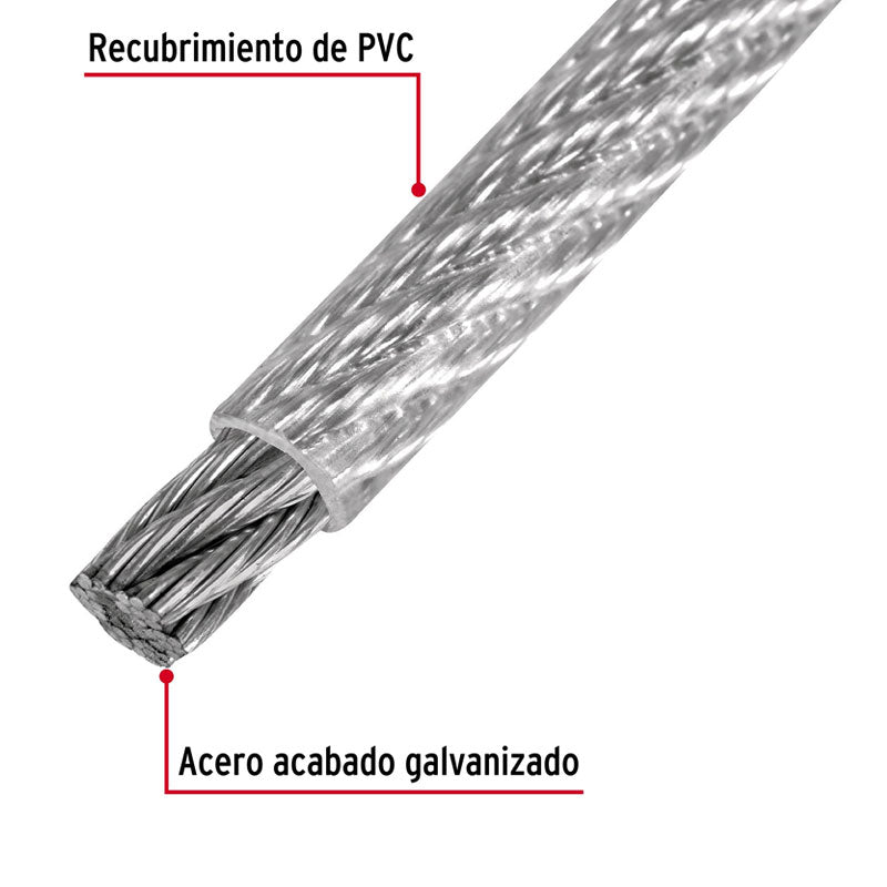 Metro de cable rígido 3/16" acero 7x7 recubierto pvc, 75 m