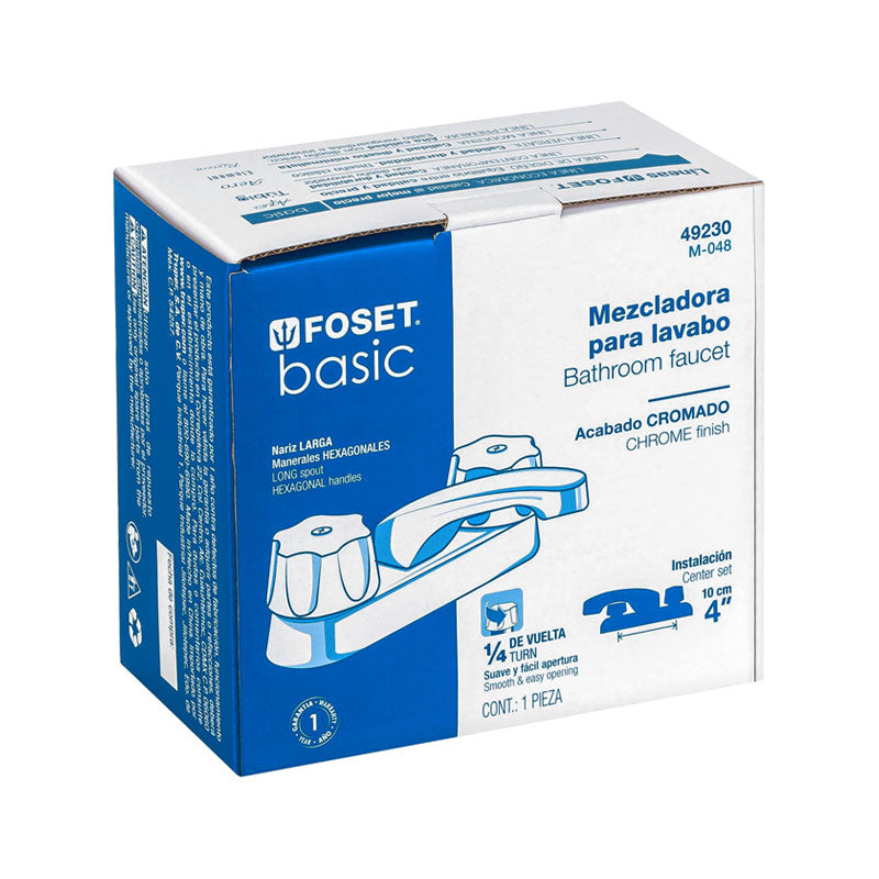 Título: Mezcladora lavabo 4" nariz larga m-048 foset 49230