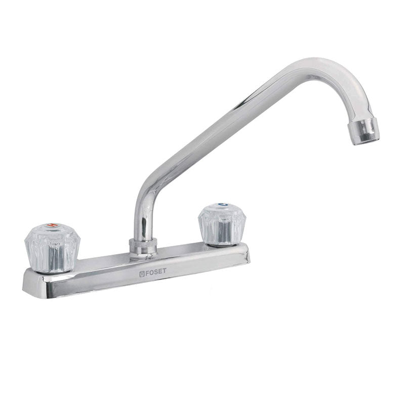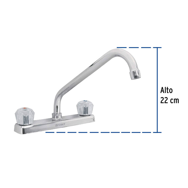 Mezcladora 8" p/fregadero, cuello largo, manerales acrílico, Foset