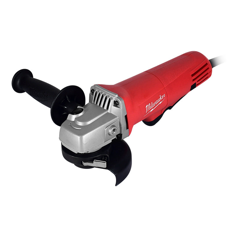 Amoladora angular pequeña de 115 mm (4-1/2") potente motor de 7.5 amperios y 11,000 RPM, ideal para lijar, cortar y desbastar en madera, metal, hormigón, etc. Cuenta con una protección resistente a quemaduras que permite ajustar rápidamente el protector sin usar herramientas.