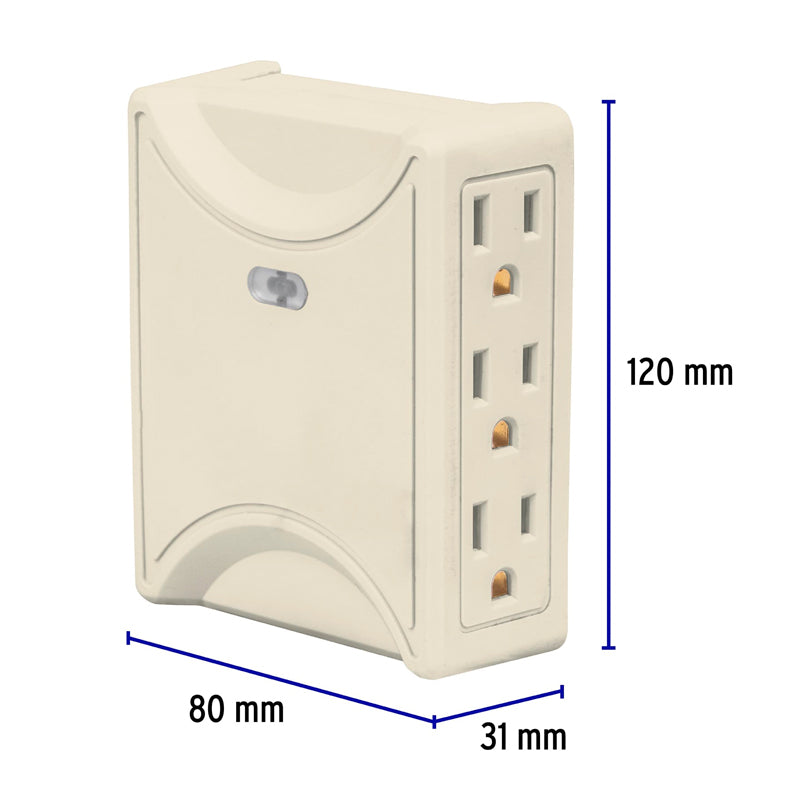Multicontacto triple aterrizado, tipo "t" reforzado, Volteck