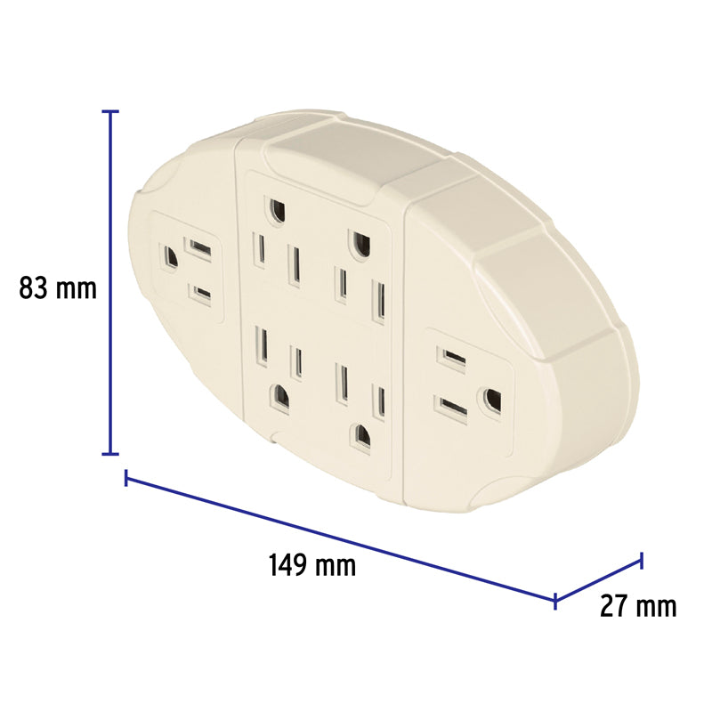 Multicontacto Aterrizado Ovalado, 6 Entradas, Volteck