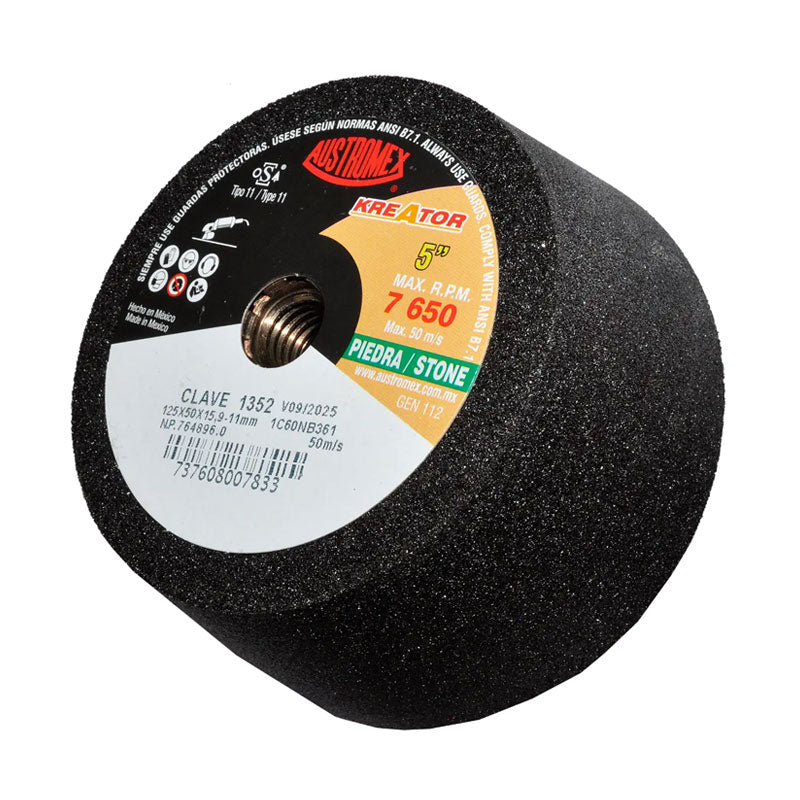 Piedra tipo copa abrasiva de 5" x 2" x 5/8"-11, Austromex