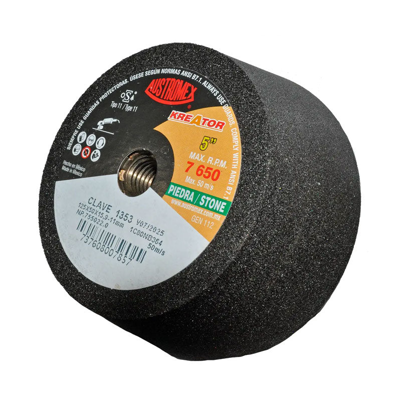 Piedra tipo copa abrasiva de 5" x 2" x 5/8"-11, Austromex