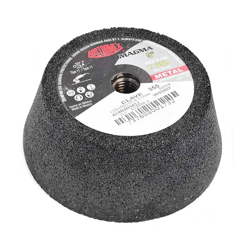 Piedra tipo copa abrasiva de 5" x 2" x 5/8"-11, para metal, Austromex
