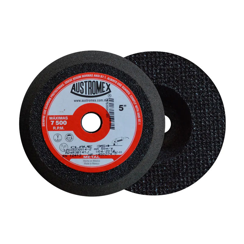 Piedra tipo copa abrasiva de 5" x 2" x M14-2, para metal, Austromex