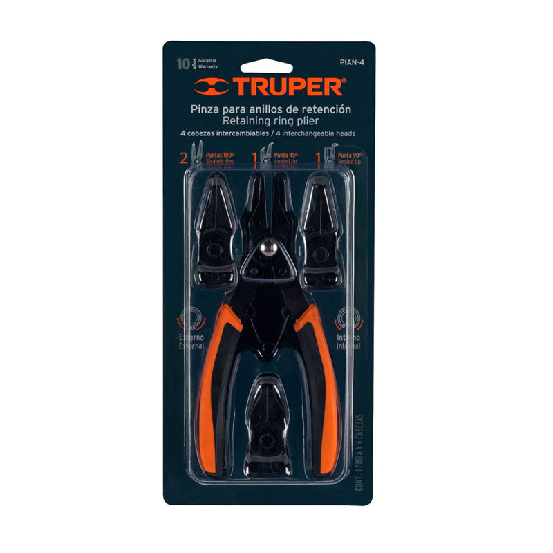 Pinza para anillos de retención 6" 4 cabezas intercambiables, Truper