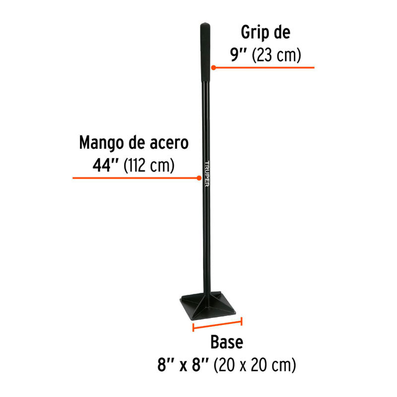 Pisón 8" x 8" con mango de acero de 44", Truper
