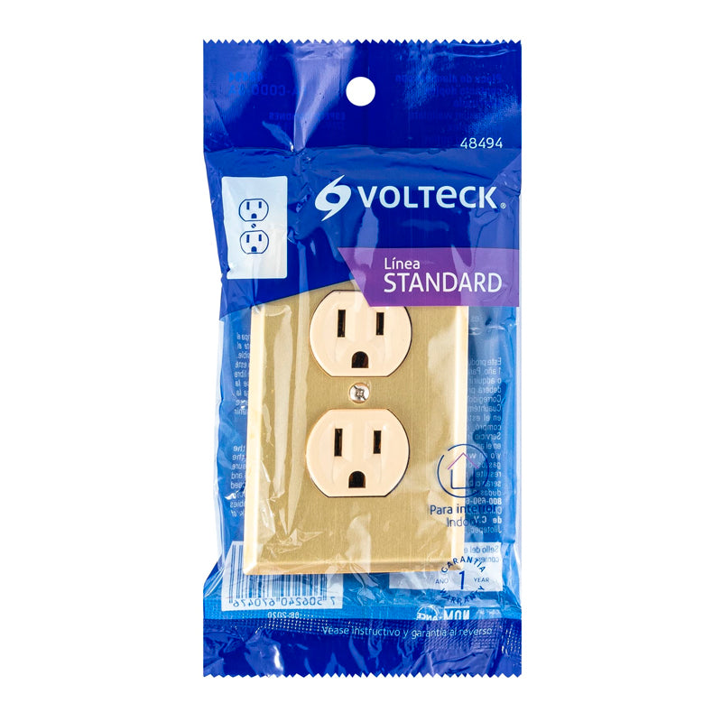 Placa armada 2 contactos polarizados,línea standard, aluminio, Volteck