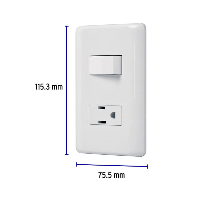 Diseñado con 1 interruptor sencillo y 1 contacto de 2 polos + tierra.