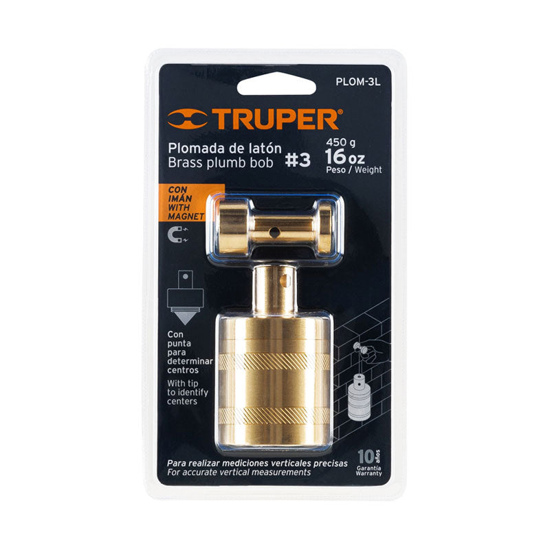 Plomada de latón 16 oz con centro y guía magnética, Truper